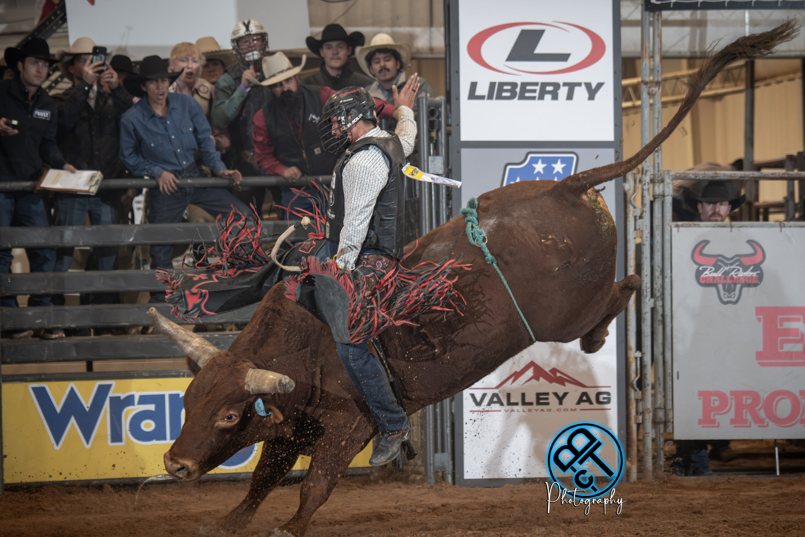 He was the only rider to cover his bull in the final round, sealing the win with a gritty 79.5-point ride on “R21” from Rocking B Rodeo.