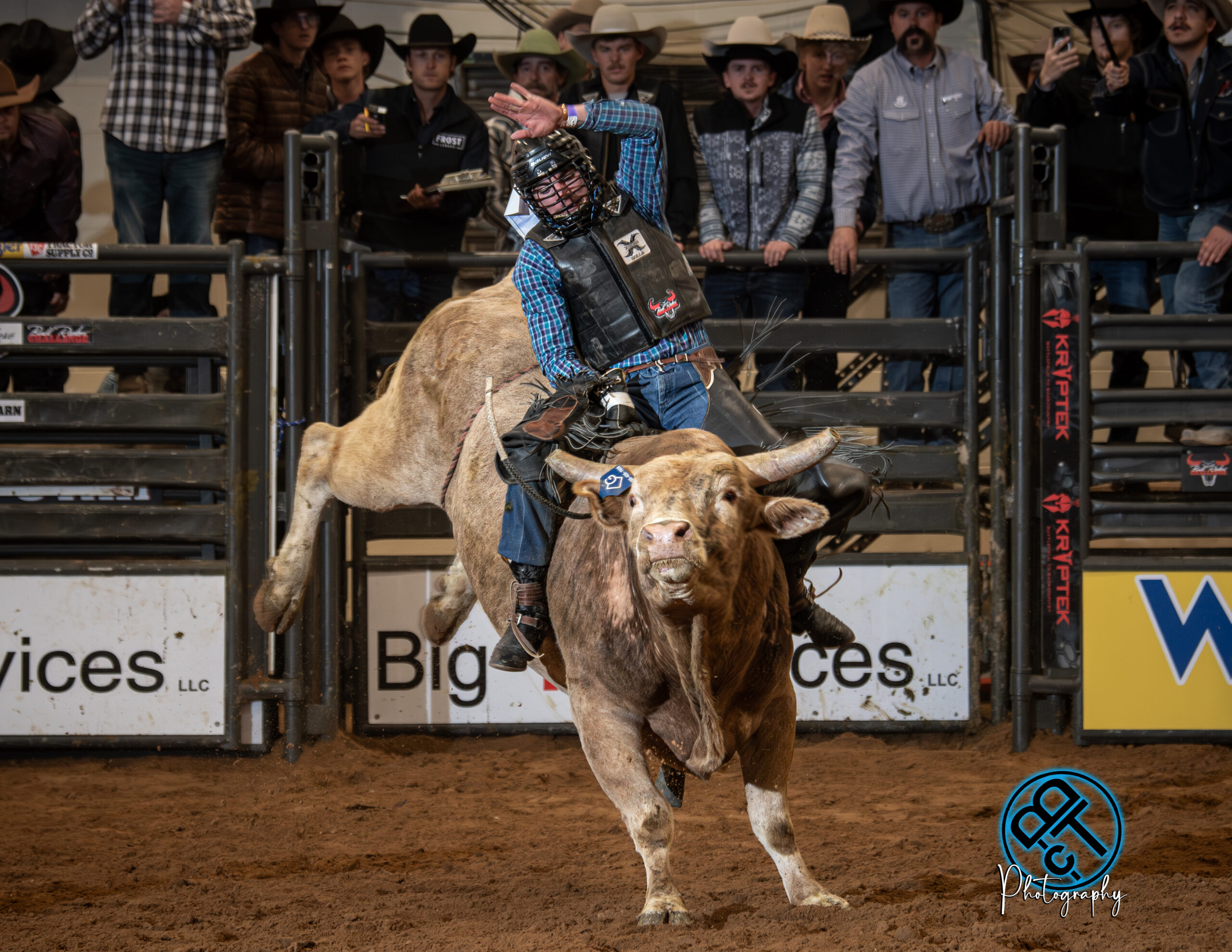 He opened the weekend with a 77-point ride on “Cig Bitty” from Whitley Buckers, then added a 71.5-point ride on “Rocket Man” from Whitley Buckers in Saturday’s round to secure second place finish.
